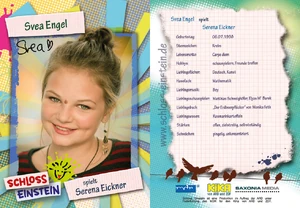 Serena Eickner ist ein Charakter der 14. Generation von Schloss Einstein und eine ehemalige Schülerin des Albert-Einstein Gymnasium in Erfurt. Sie bleibt auf einer anderen Schule in London.